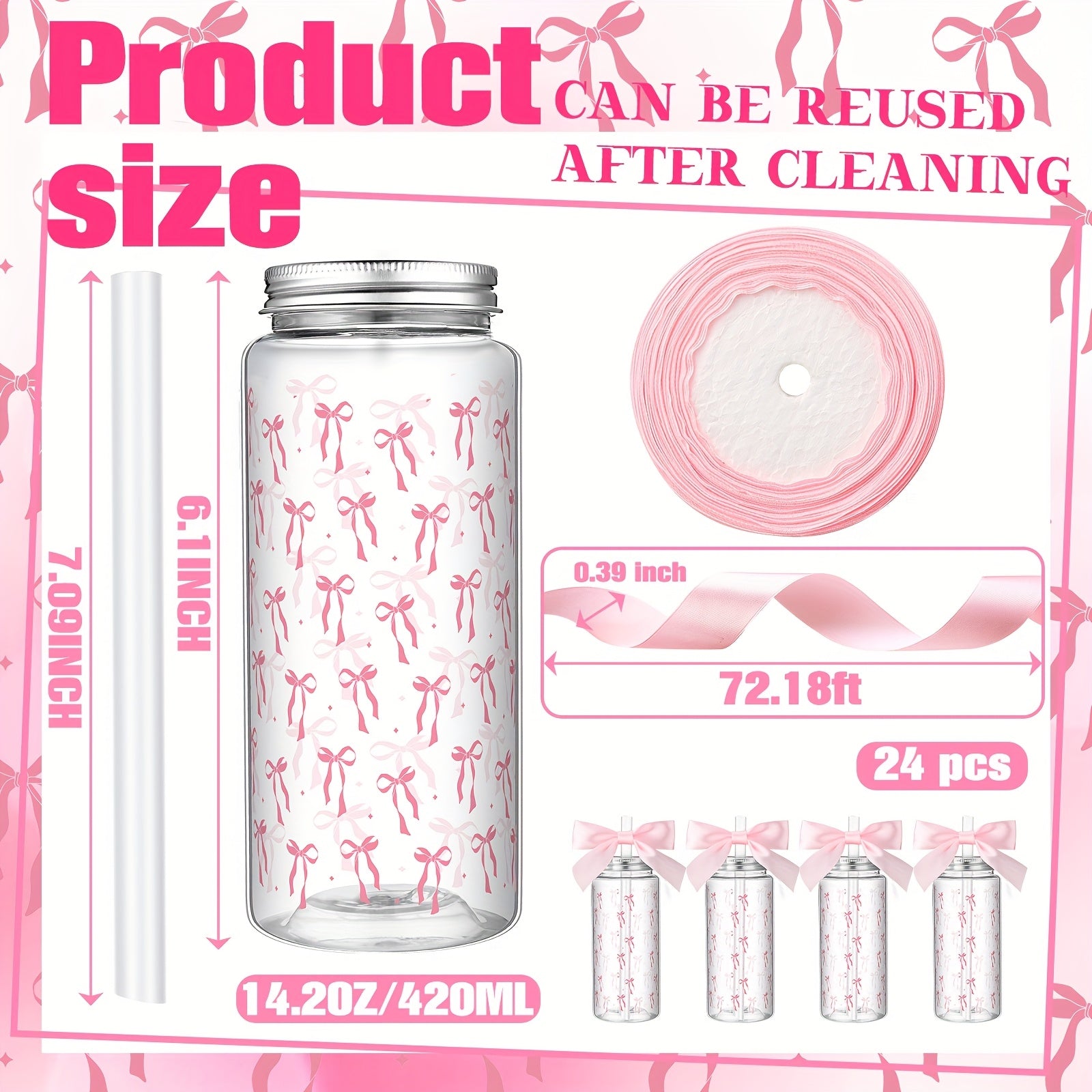 24pcs Pink Bow Plastic Cups Coquette Bow Aesthetic Cup with Lids And Straws 14 Oz Reusable Cute Bow Plastic Tumbler with Ribbon Bow for Women Birthday Bridal Shower Wedding Party Supplies Halloween&Christmas
